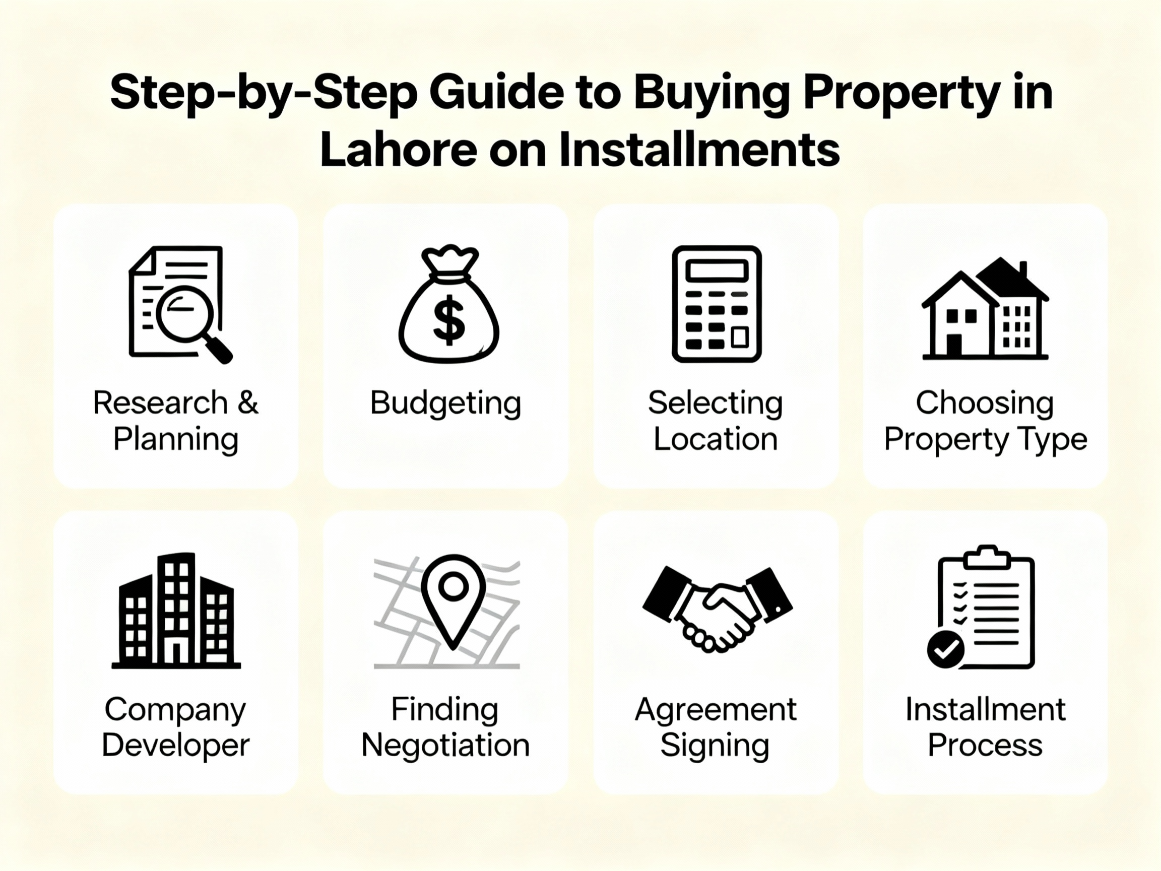 1. This Week: Run affordability calc (installment ≤ 30 % take-home), shortlist 2 societies, book site visit.